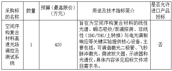 项目名称:南开大学材料科学与工程学院空间序构复合材料高速光场调控及测试系统采购项目